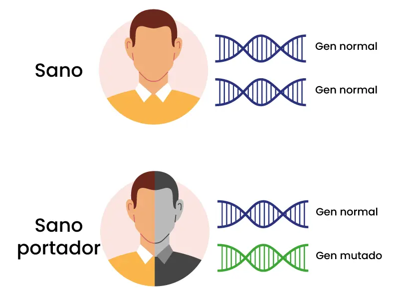 Todos poseemos dos copias de todos los genes. Un(a) portador(a) es una persona sana, que tiene una de sus copias con una alteración