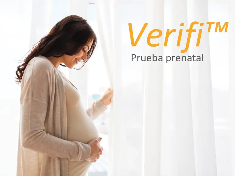 La nueva prueba prenatal verifi® mide el material genético (o ADN) del bebé presente en la sangre de la mujer embarazada para buscar la falta o aumento de 1 o más cromosomas en el bebé. La falta, o exceso de cromosomas se conoce como «aneuploidías» y pueden estar relacionadas con patologías en el bebé.